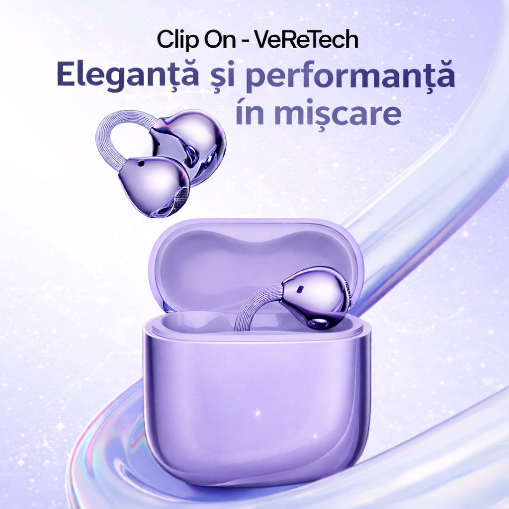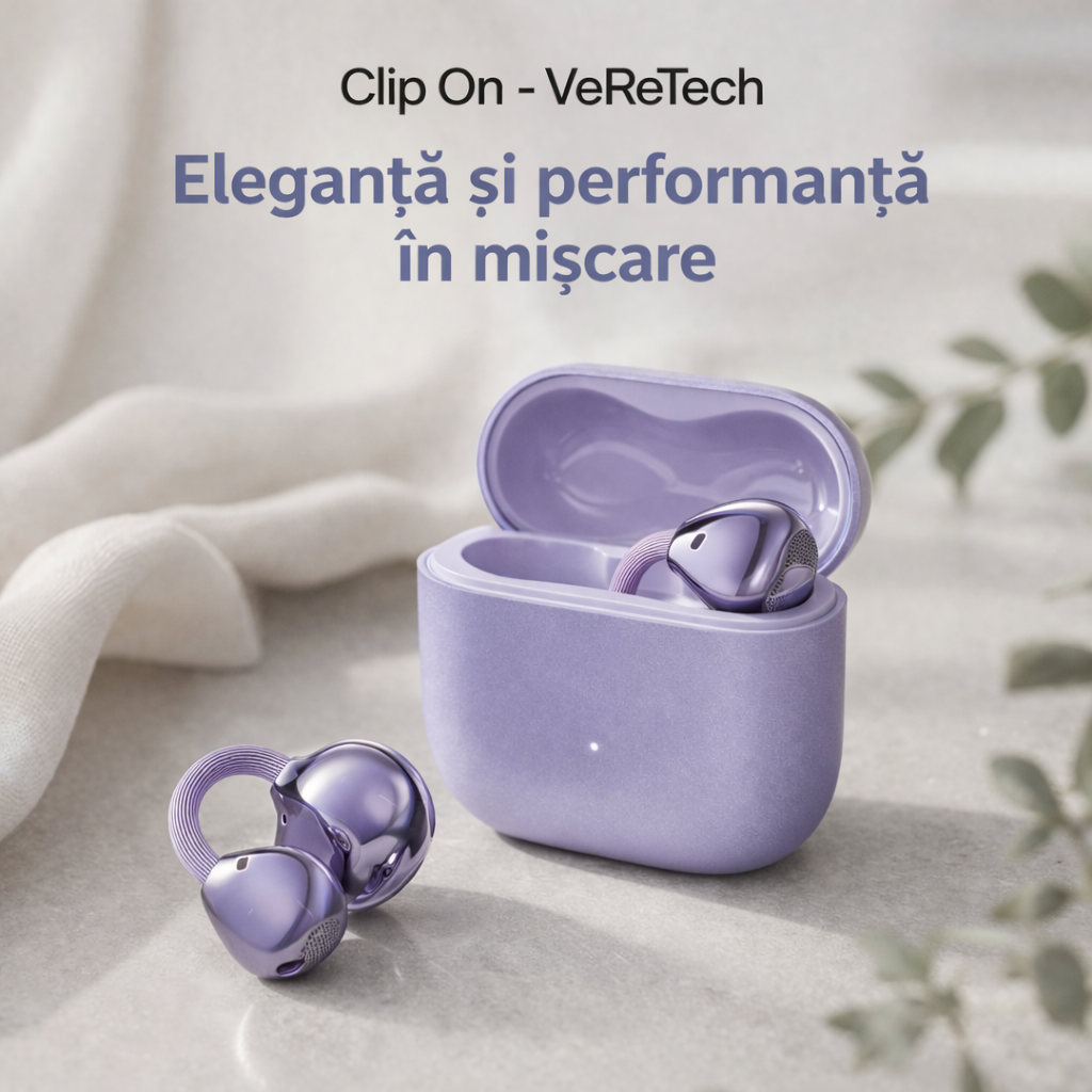 VeReTech Clip-On sunt gandite pentru libertate totala, fara disconfortul castilor clasice. Sunet clar, design stabil si confort pe termen lung.