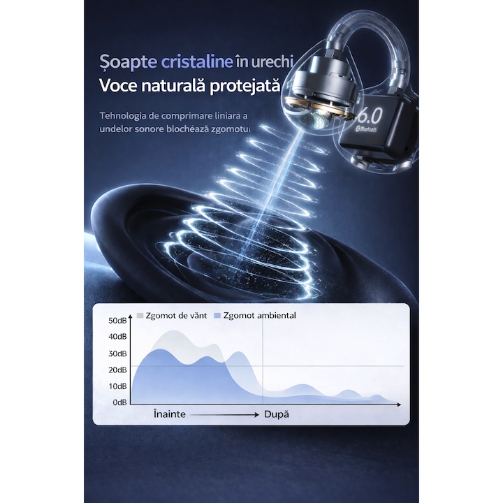 Casti Open-Ear Premium, VeReTech, Clip-On din Silicon, True Wireless, Bluetooth 6.0, High Definition Sound, Music Mode si Game Mode, Control Tactil Intuitiv, Carcasa de Incarcare 300mah, pana la 42 Or