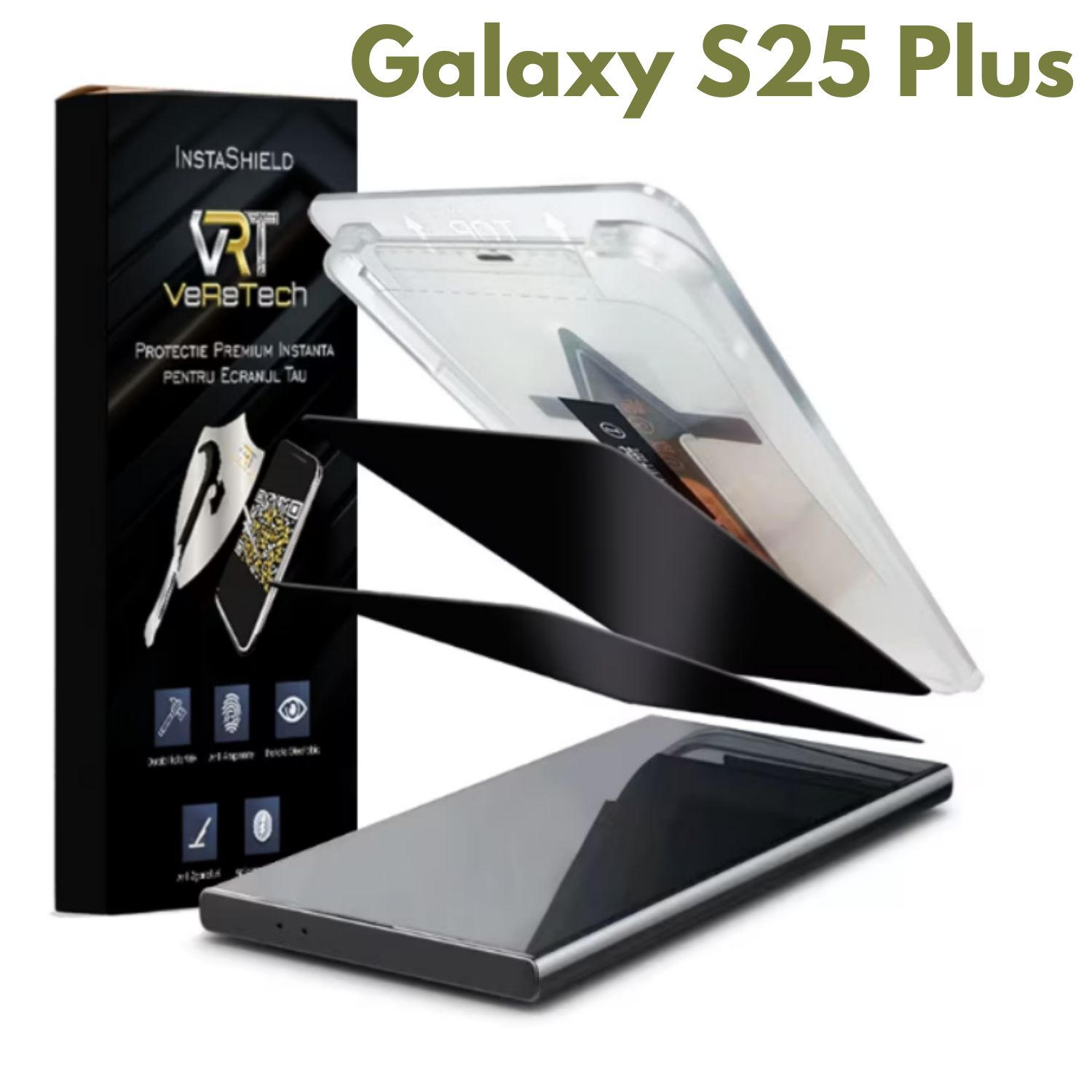 Folie de Protectie Privacy InstaShield by VeReTech pentru Samsung Galaxy S25 Plus, cu Kit de Aplicare Instanta si Functie Automata de Indepartare a Prafului