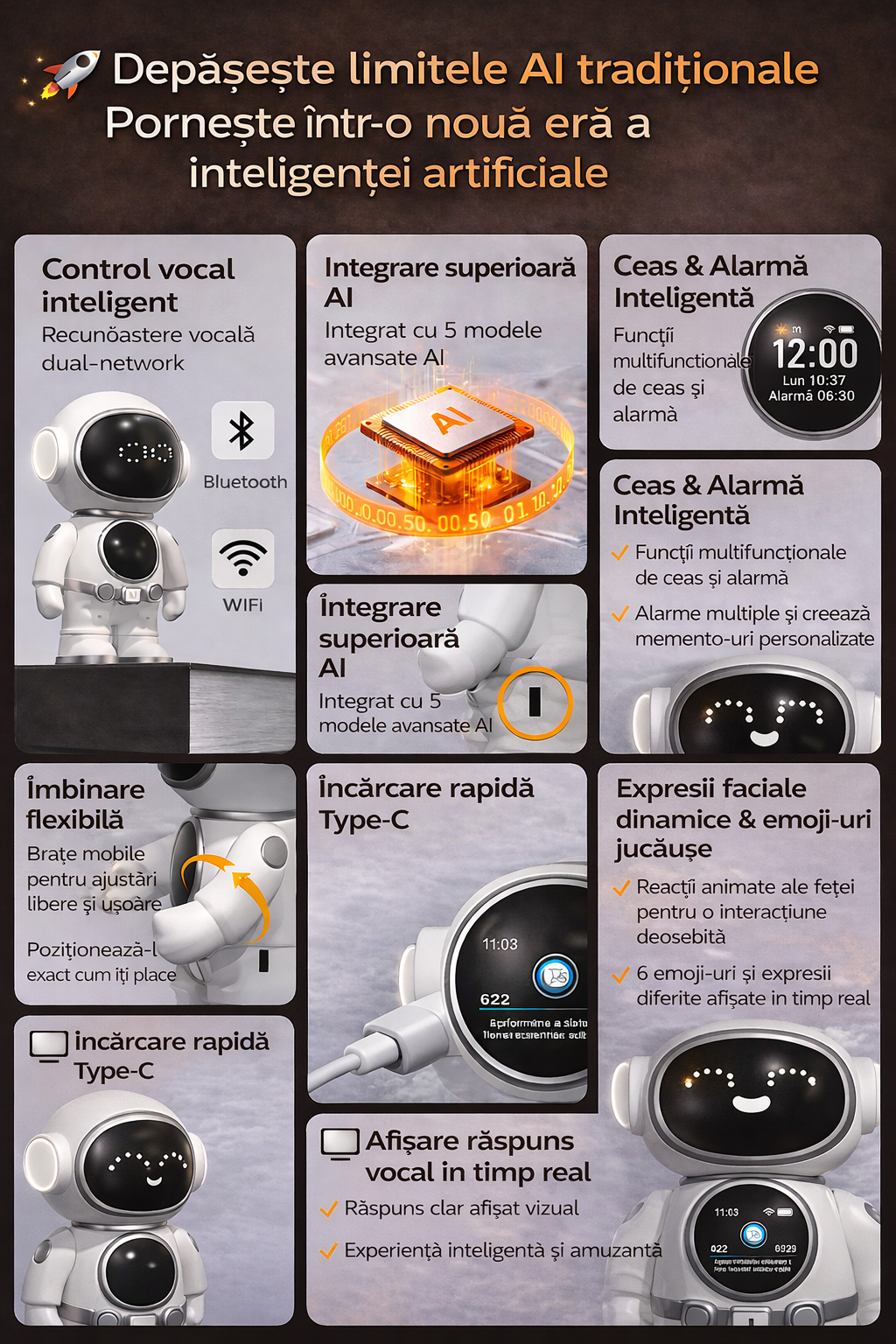 Transformă modul în care copilul tău învață și se distrează cu un robot educativ inteligent, creat pentru a combina tehnologia modernă cu dezvoltarea armonioasă a celor mici.