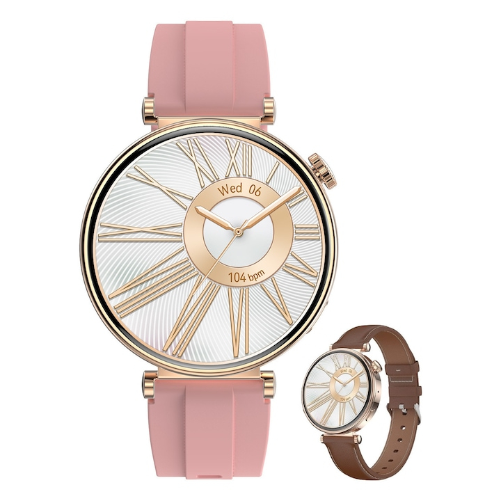 Tehnologia avansata combinata cu un design elegant si functional face din acest smartwatch un cadou perfect pentru orice femeie. Fie ca iti doresti sa-ti urmaresti activitatea fizica sau pur si simplu sa fii conectata, acest ceas iti va indeplini toate dorintele.