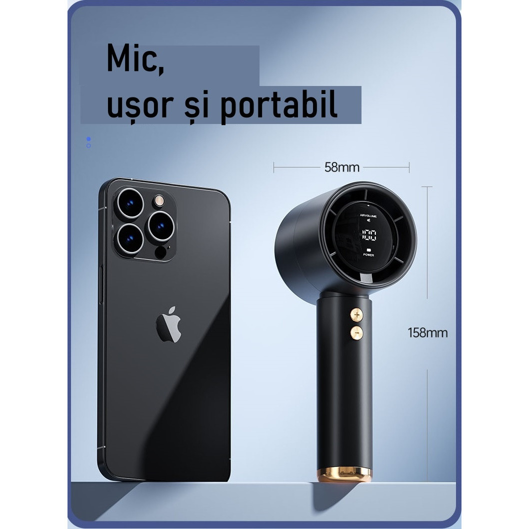 Acest ventilator de mana ultra-compact este de 3 ori mai puternic decat modelele clasice datorita micro turbinei avansate.