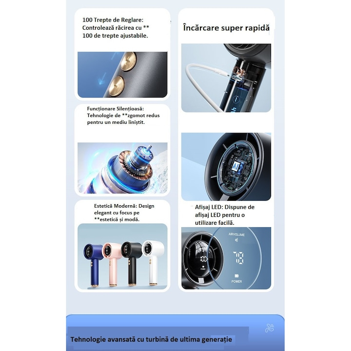 Acest ventilator de mana ultra-compact este de 3 ori mai puternic decat modelele clasice datorita micro turbinei avansate.