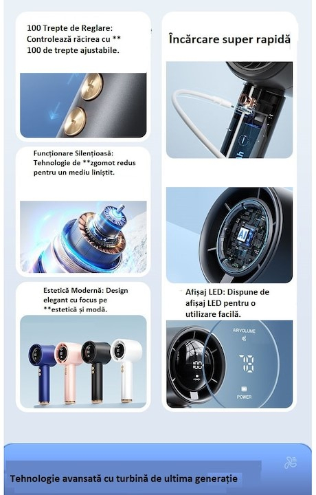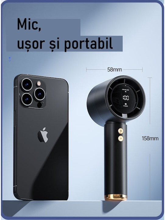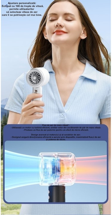 Acest ventilator de mana ultra-compact este de 3 ori mai puternic decat modelele clasice datorita micro turbinei avansate.